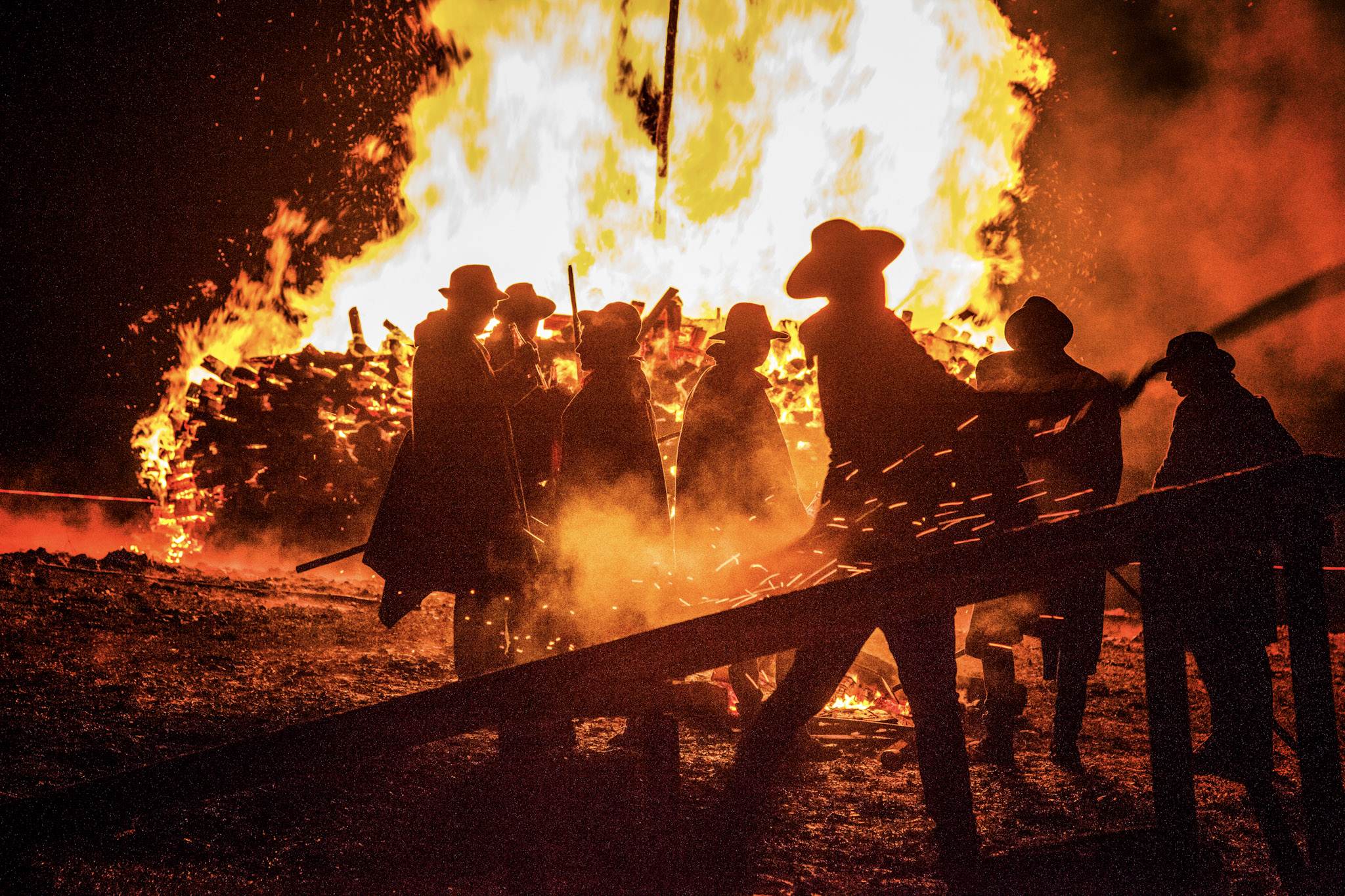 Flammen lodern geheimnisvoll in den dämmerblauen Himmel. Glühende Scheiben flirren wie Sternschnuppen durch die Nacht. Eine Spur aus feuriger Funkenglut hinter sich ziehend, sausen sie weit durch die Lüfte.