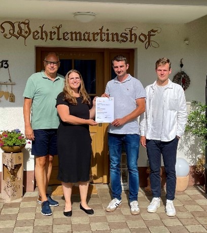 Der Schingerhof hat in diesem Jahr schon drei Klassifizierungen erhalten. Der im Griesbach in Simonswald gelegene Hof hat mehrere Wohnungen. Die nun klassifizierte Wohnung „Abendsonne“ bietet Schlafmöglichkeiten für 2 bis 3 Personen und ausgezeichnetem Blick nach Simonswald.
