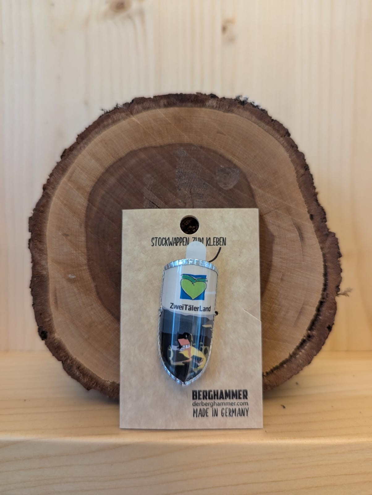 Mit dem ZweiTälerLand Stockwappen hebst du die Tradition in die Moderne. Statt mit einem Nagel in den Holzstock kannst du mit den hochwertigen Klebewappen deinen Aluminium- oder Carbonstock mit dem ZweiTälerLand individualisieren – ganz egal ob Wander- oder Skistock. Das Motiv zeigt den Hörnleberg mit seiner Wallfahrtskapelle.